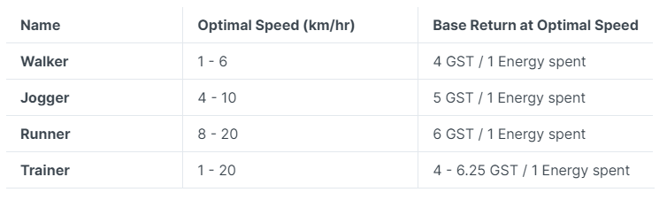 Như chúng ta đã biết, StepN có 4 loại giày khác nhau là Walker, Jogger, Runner và Trainer. Tương ứng với mỗi loại giày này thì: