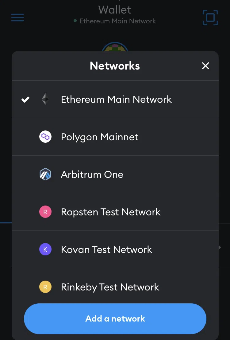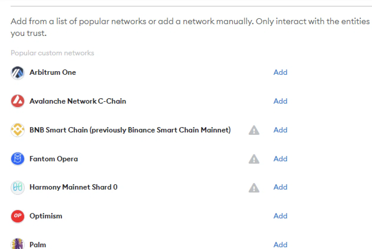 Một danh sách các mạng khác nhau sẽ xuất hiện. Nếu Metis không có trong danh sách mặc định này, hãy nhấn vào “Add Network” để thêm mạng mới.