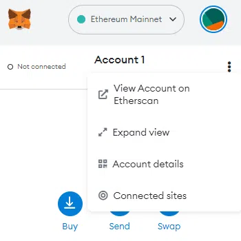 - Sau bước quan trọng này, bạn có thể dễ dàng ngắt kết nối ChainList khỏi MetaMask của mình. Nhấp vào ba dấu chấm ở phía bên phải của ví tiện ích mở rộng trình duyệt. Tiếp theo, chọn “Connected Sites” và sau đó ngắt kết nối ChainList vĩnh viễn.