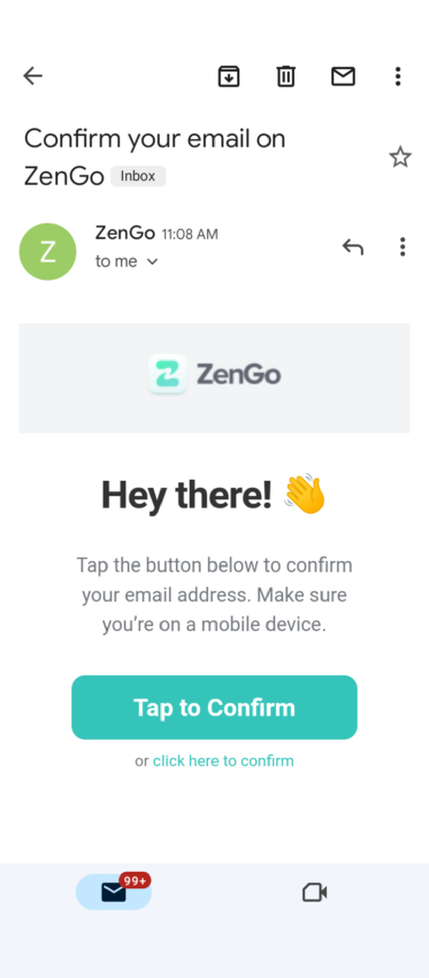 - Sau khi xác nhận email, bạn sẽ được chuyển trở lại ứng dụng ZenGo.
