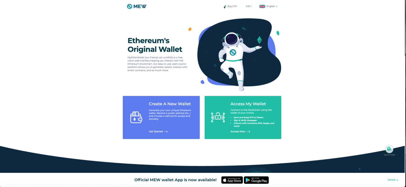 Ứng dụng MEW Wallet có sẵn trên cả hệ điều hành iOS và Android. Bạn có thể tìm kiếm nó trên App Store, hoặc theo đường link trên trang web MyEtherWallet để tránh những trang web giả dạng.