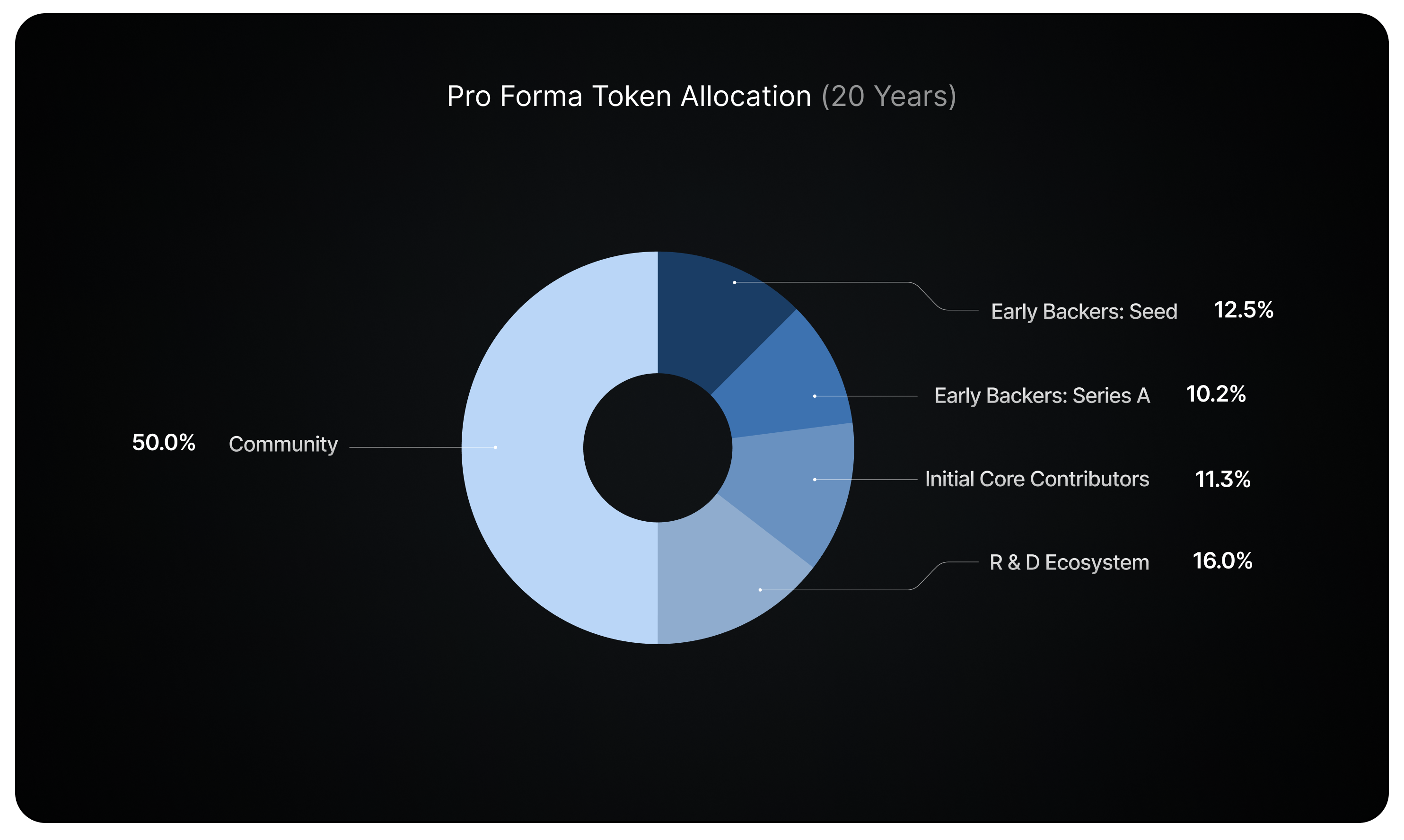 Với 500 triệu IO được phân bổ ban đầu, nó sẽ được chia thành 5 nhóm bao gồm: Nhà đầu tư hạt giống, Nhà đầu tư Series A, Người đóng góp cốt lõi, R&D, Hệ sinh thái và Cộng đồng. Tỷ lệ cho các nhóm này sẽ theo hình dưới đây.