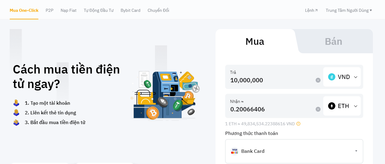 Hướng dẫn mua Ethereum bằng thẻ tín dụng, thẻ ghi nợ trên Bybit