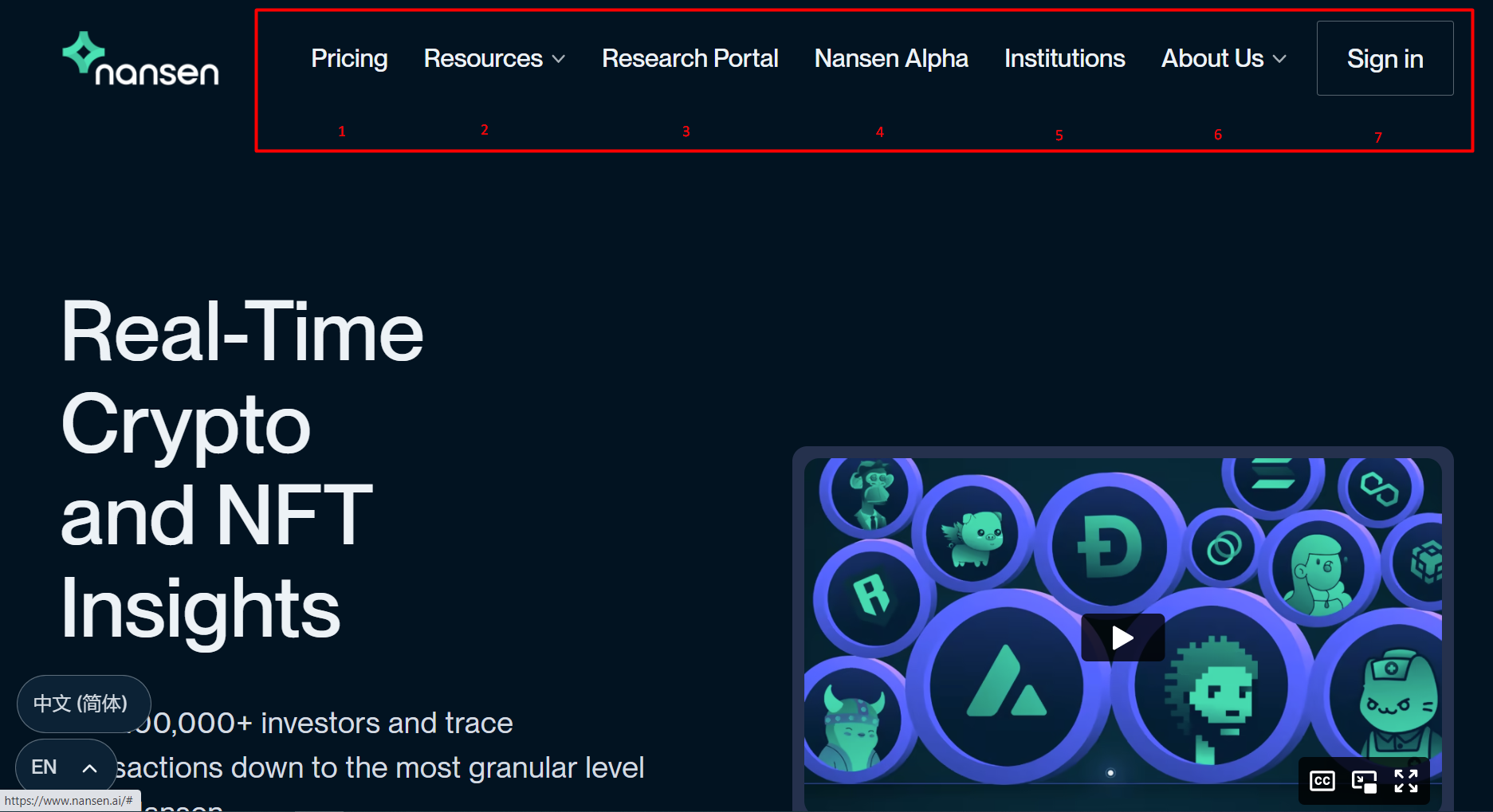 - Pricing: Nơi đăng ký các gói dịch vụ Nansen.