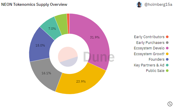 Với tổng cung 1 tỷ NEON token, chúng được phân bổ theo tỷ lệ như hình dưới đây: