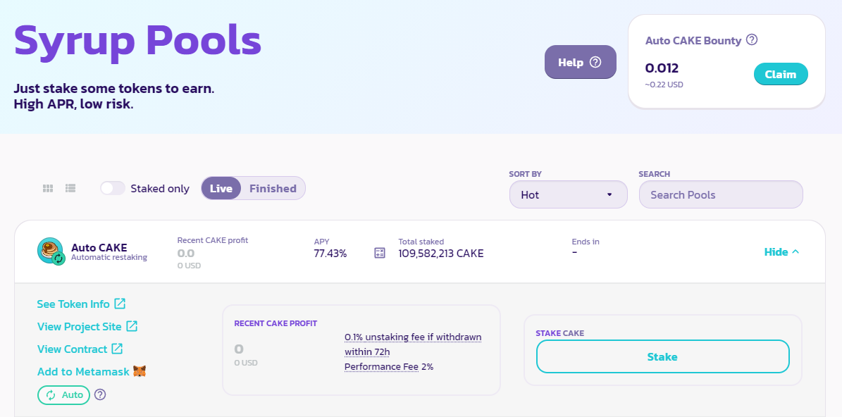 - Syrup pool: ~ 288,000 CAKE.