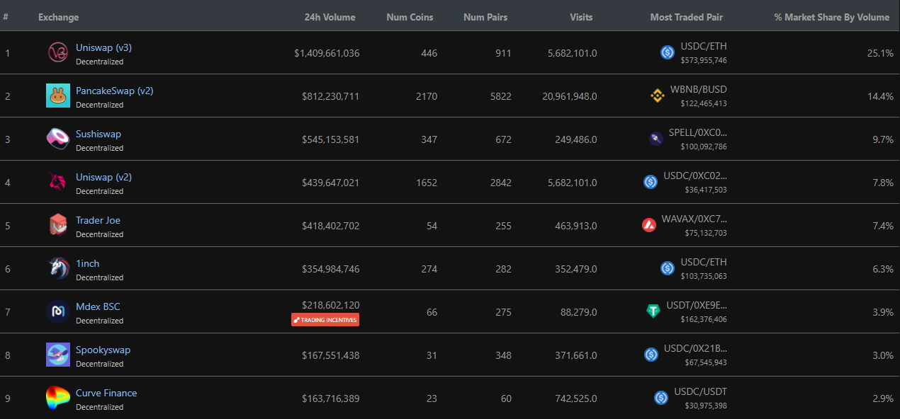 Theo DeFi Pulse, tính đến thời điểm hiện tại, TVL của các sàn DEX hiện chạm ngưỡng 28 tỷ USD. Một năm trước đây, con số này mới chỉ dừng lại ở khoảng 5 tỷ USD mà thôi. Điều này phần nào cho thấy tốc độ tăng trưởng đến chóng mặt của các sàn DEX trong thời gian gần đây.