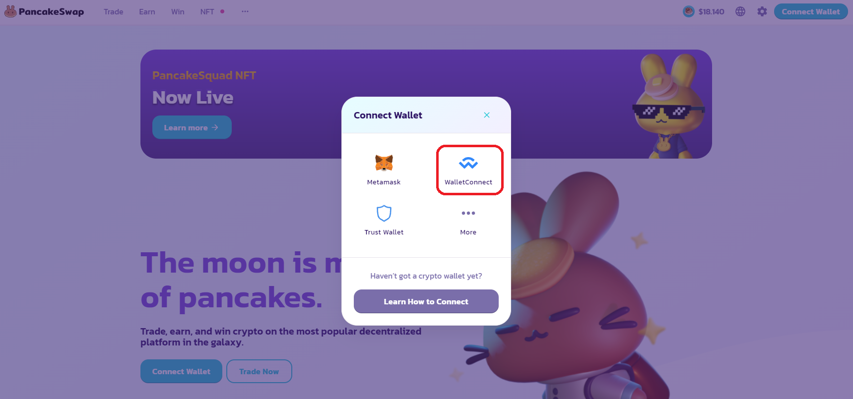 PancakeSwap là một sàn giao dịch phi tập trung. Điều đó có nghĩa là sàn sẽ không trực tiếp lưu trữ tiền của các nhà đầu tư. Thay vào đó, giao thức sẽ cho phép kết nối với một ví không lưu ký mỗi khi thực hiện giao dịch. Trong phần bài viết này, mình sẽ hướng dẫn các bước để kết nối ví điện tử Trust Wallet với PancakeSwap thông qua hình thức WalletConnect nhé.