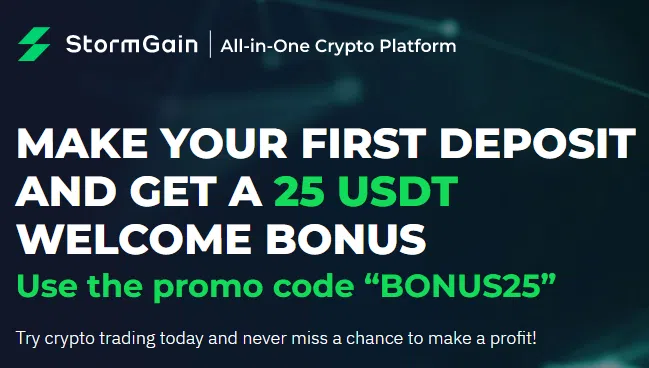 #1. Stormgain – Thưởng 25 USD cho khoản tiền gửi đầu tiên