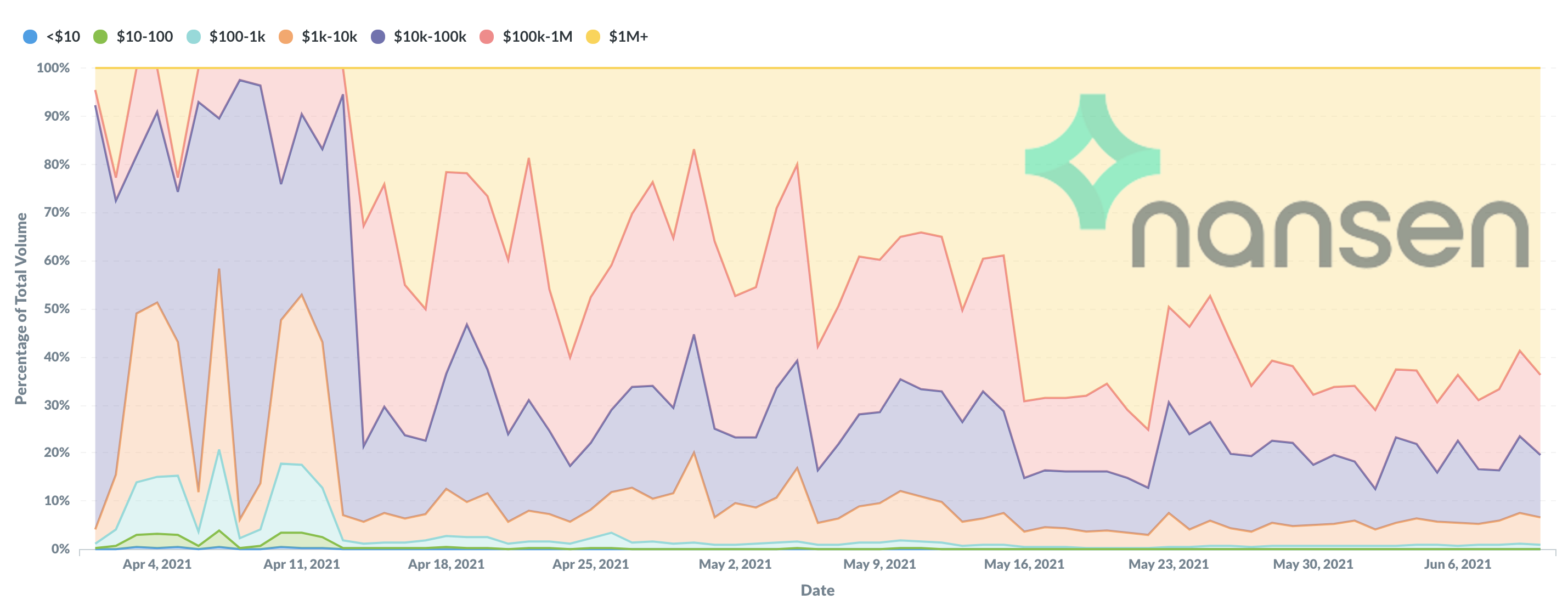 Có thể vì điều này mà thời gian gần đây, mối quan tâm của các tổ chức đối với Polygon cũng đang có dấu hiệu gia tăng. Theo một nghiên cứu từ Nasen, có khoảng 65% khối lượng giao dịch stablecoin hàng ngày trên Polygon đến từ các giao dịch trên 1 triệu USD.