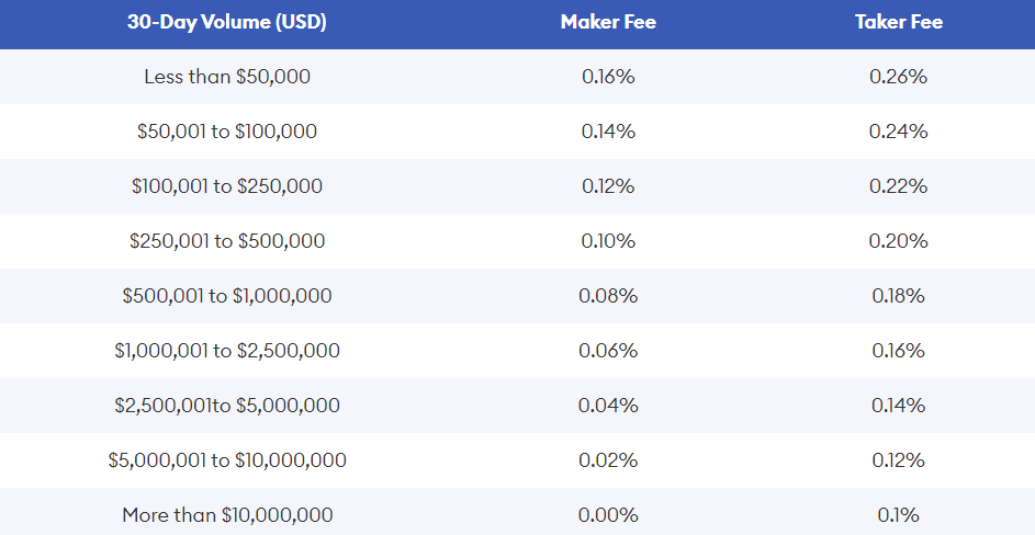 - Với Kraken Pro, phí sẽ thấp hơn đáng kể. Kraken tính phí maker 0.16% và phí taker 0.26% cho các giao dịch từ 50,000 USD trở xuống dựa trên hoạt động trong vòng 30 ngày qua.