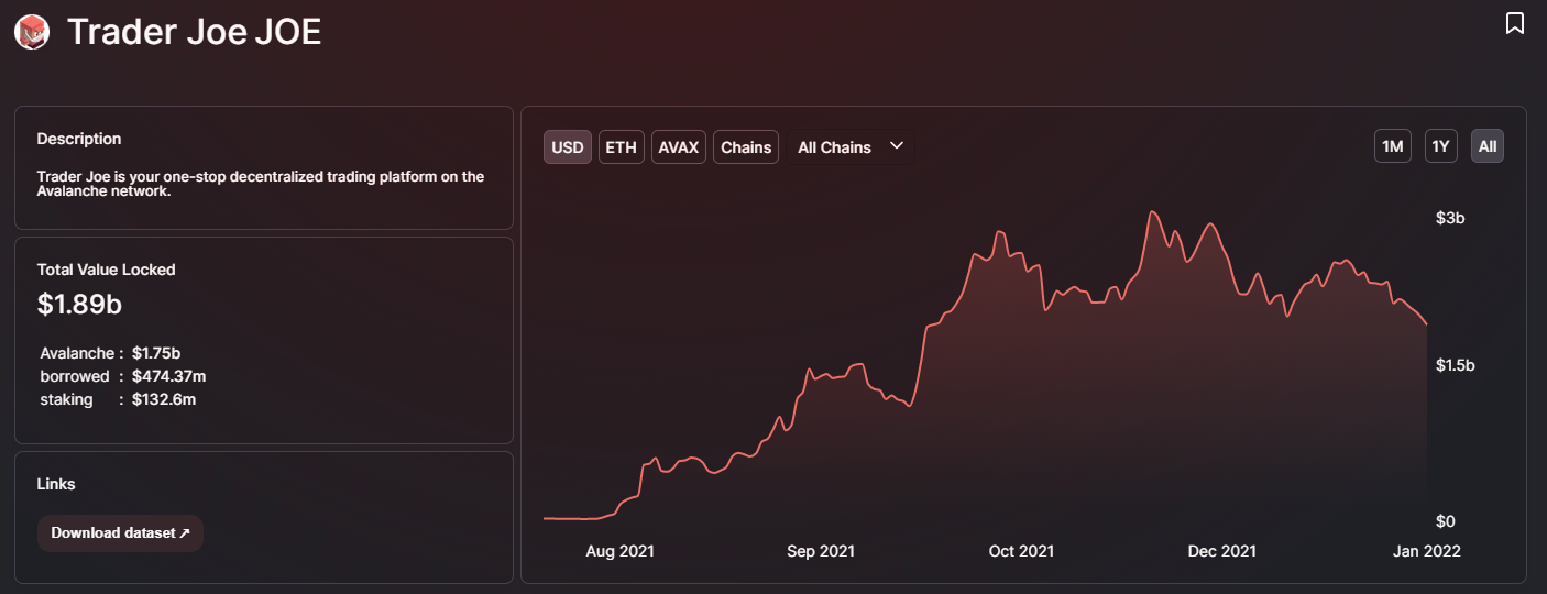 Với TVL khoảng 1.89 tỷ USD, Trader Joe hiện đang là sàn DEX lớn nhất trên mạng lưới của Avalanche.