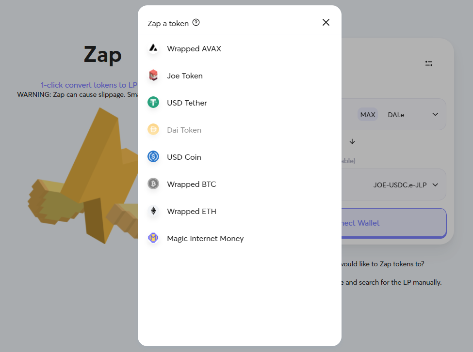 - Zap: Trader Joe cho phép người dùng có thể đổi một token bất kỳ lấy liquidity provider token (LP token) thông qua 1 cú click chuột.