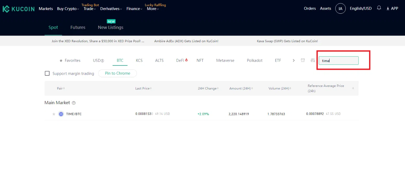 - Tiếp theo, tìm kiếm đồng coin bạn muốn giao dịch.