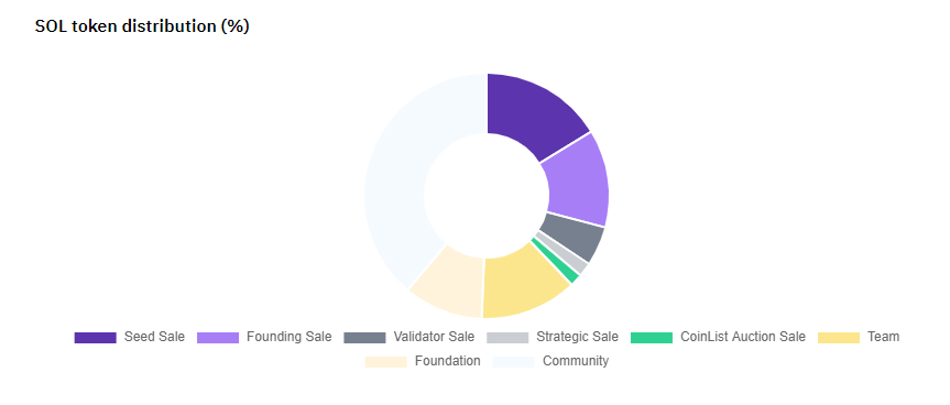 Tổng cung ban đầu của dự án là 500.000.000 SOL đã được khởi tạo trong khối genesis. Kể từ đó, tổng nguồn cung hiện tại đã có sự thay đổi. Nguyên nhân đến từ việc đốt phí giao dịch và sự kiện giảm mã thông báo theo kế hoạch. Với tổng cung này sẽ được phân bổ theo kế hoạch sau đây.