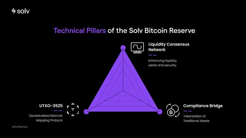 Như BeInCrypto đã chia sẻ ở trên, mục đích của Solv Protocol là xây dựng On-chain Bitcoin Reserve phi tập trung, từ đó giúp tối đa hóa tiềm năng của những Bitcoin nhàn rỗi. Vậy Sol Bitcoin Reserve cụ thể là gì? Theo ghi nhận của BeInCrypto, Solv Bitcoin Reserve được xây dựng dựa trên 3 trụ cột chính: