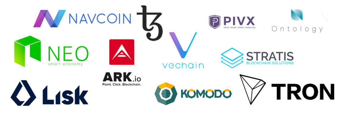 Các Altcoin phổ biến khác để staking bao gồm: EOS, Tezos, Tron, Cosmos, NEO, VeChain, Ark, Lisk, Loom, Decred, Stratis, ICON, Qtum, PivX cùng với một vài đồng tiền có vốn hóa thấp khác. Bài viết này sẽ khám phá việc staking một vài đồng tiền phổ biến sau đây.