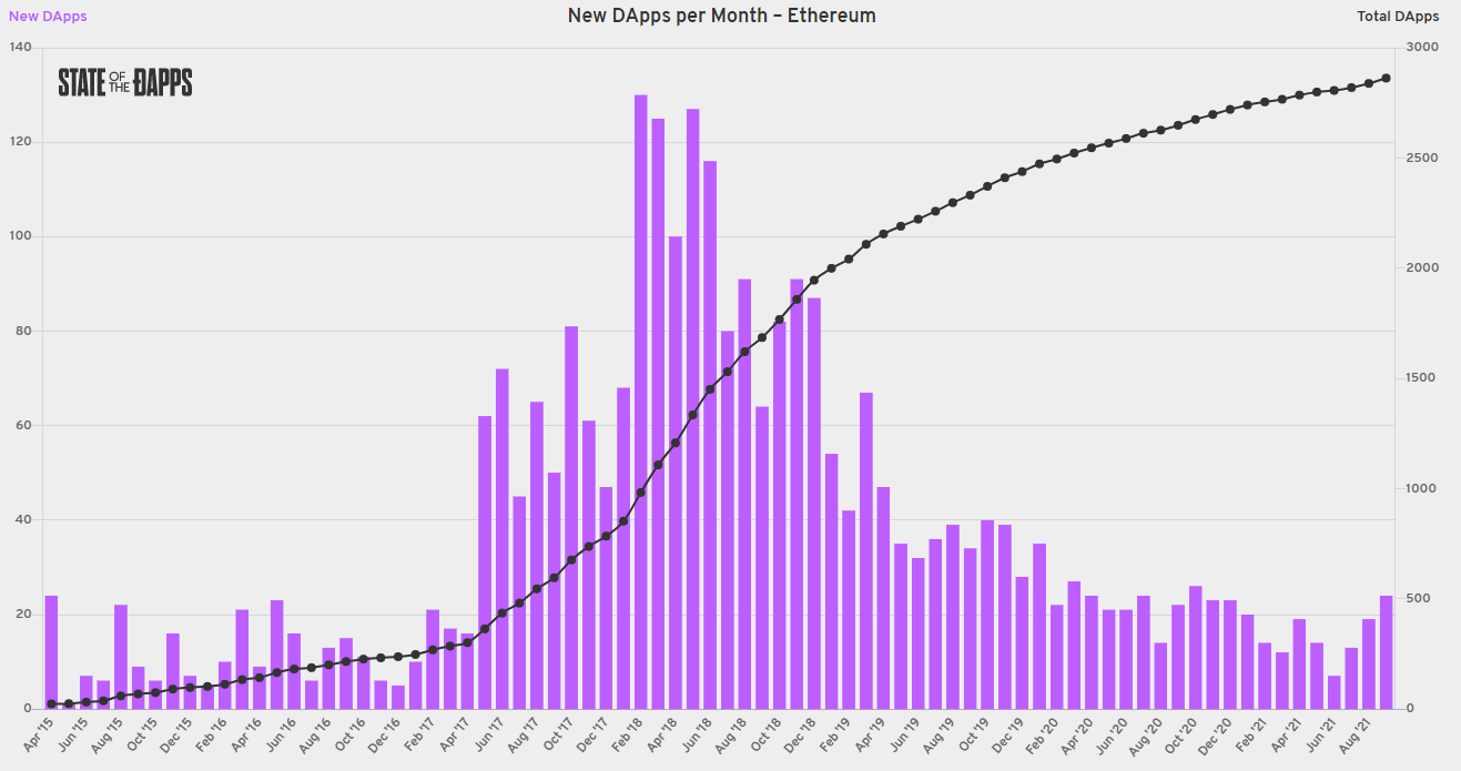 Tuy nhiên, do Ethereum đã tồn tại lâu hơn Tezos một vài năm, nên nó có hệ sinh thái Dapp đa dạng và phong phú hơn nhiều – bao gồm 3,674 Dapp và 1.22 tỷ hợp đồng thông minh.