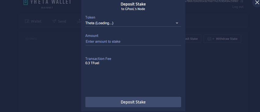 Nếu bạn có đủ 1,000 token, bạn có thể sử dụng ví web Theta để stake token của mình. Bạn có thể làm điều này với tối đa 10,000 token.