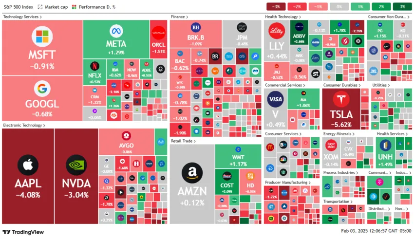 Thị trường tài chính toàn cầu đã chứng kiến một đợt bán tháo lớn sau thông báo của Tổng thống Donald Trump về mức thuế quan mới đối với các đối tác thương mại lớn của Hoa Kỳ. Mặc dù mức thuế quan mới chính thức có hiệu lực vào thứ Ba, ngày 04/02/2025, nhưng thị trường đã bắt đầu bán tháo vào cuối tuần trước đó.