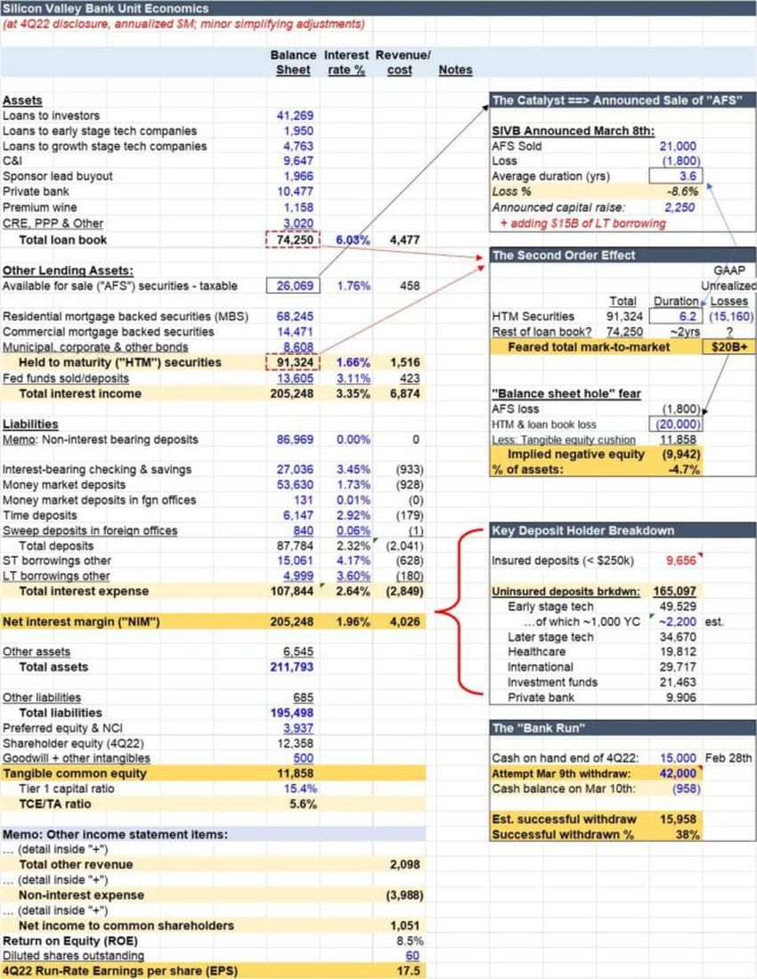 SVB nắm giữ một tỷ lệ lớn tài sản của mình trong các trái phiếu này và giá lao dốc dẫn đến tổn thất đáng kể. Khi lãi suất tăng lên, các công ty mới thành lập đã chọn gửi tiền tại SVB đã quyết định rút tiền và mạo hiểm để có lợi suất cao hơn. Do đó, khi sự kiện bank run xảy ra, SVB không có nhiều tài sản dạng Available for Sale (AFS) để bán.