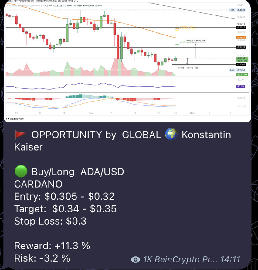 - Chọn tín hiệu và bấm vào nó. Trong bài đăng, bạn có thể thấy biểu đồ TradingView tích hợp với nhận xét của người dùng. Hãy nhớ kiểm tra thời gian của bài đăng và đảm bảo bạn không theo dõi các tín hiệu giao dịch tiền điện tử cũ.