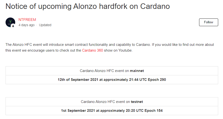 - Thứ hai, Alonzo là bản hard fork hiện tại của Cardano Goguen. Khi bản hard fork này thành công, kỷ nguyên Goguen sẽ chính thức bắt đầu.