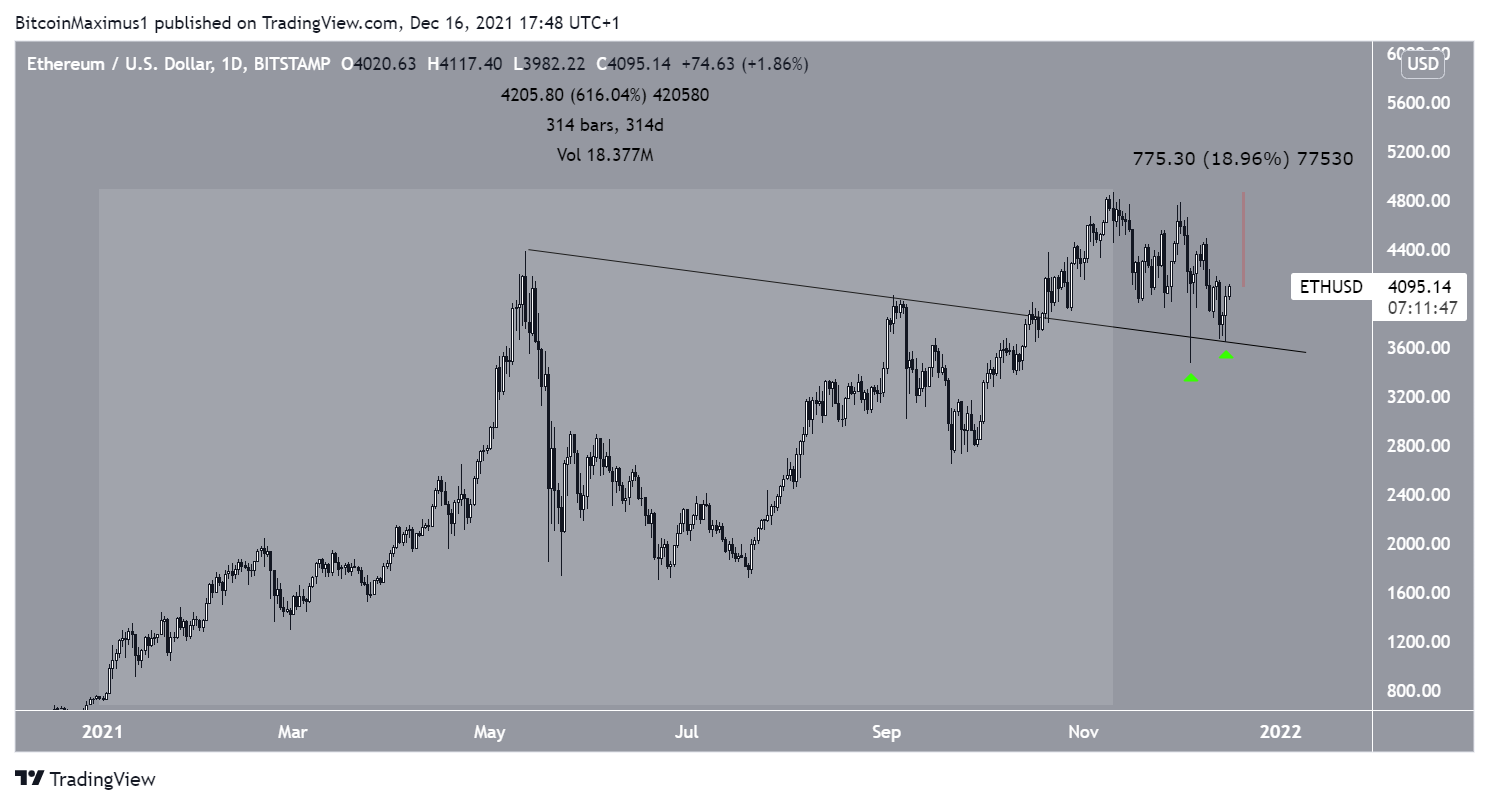 Bất chấp những vấn đề nhỏ này, có vẻ như với sự gia tăng không ngừng của NFT và các game Play to Earn, ETH có thể phát triển vượt bậc thời gian tới. ETH đạt mức cao nhất mọi thời đại vào ngày 10/11, cùng ngày với BTC. Đồng coin này cũng đã không giảm nhiều kể từ đó và dường như đã xác thực đường kháng cự giảm dần trước đó (biểu tượng màu xanh lá cây). Hiện tại, nó chỉ thấp hơn 19% so với mức cao nhất mọi thời đại.