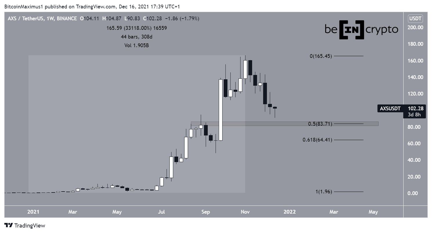 Vào đầu năm 2021, AXS đã được giao dịch gần 0.5 USD. Với một tốc độ tăng trưởng thần tốc sau đó, có thời điểm cao nhất 1 AXS đã được giao dịch ở mức 166.09 USD vào ngày 4/11. Từ mức này, giá AXS đã tăng 33,118% so với mức thấp nhất. Mặc dù đồng coin này đã giảm kể từ đó và hiện được giao dịch quanh vùng 100 USD, nhưng qua phân tích biểu đồ chúng ta đã nhìn thấy hai đường hỗ trợ mạnh ở vùng 83.7 USD và 64.4 USD. Điều này có thể giúp giá cả ổn định trong thời gian tới.
