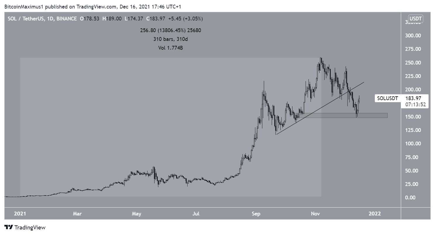 SOL đã tăng 13,806% kể từ đầu năm, dẫn đến mức giá cao nhất mọi thời đại mới là 259.9 USD vào ngày 4/11. Đây là đồng coin có tỷ lệ tăng cao thứ hai, chỉ sau AXS. Mặc dù nó đã giảm kể từ đó và thậm chí đã bị phá vỡ khỏi đường kháng cự giảm dần, nhưng nó đã bật lên tại vùng hỗ trợ ngang 150 USD.