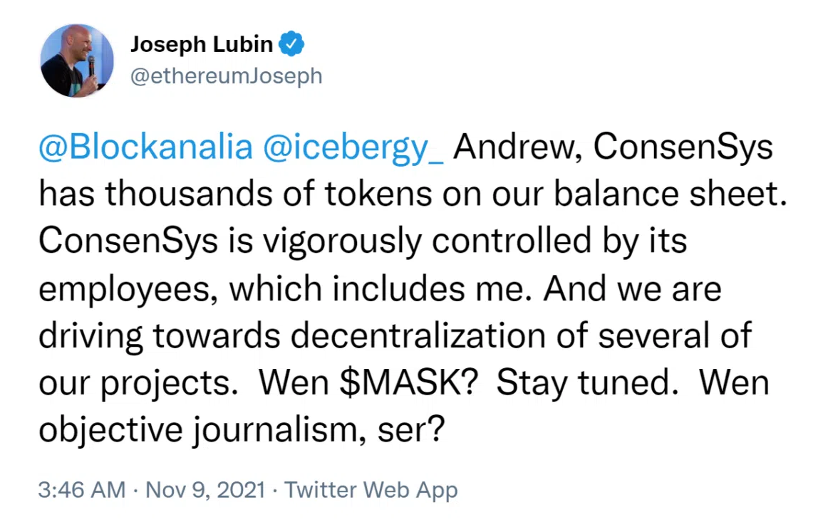 Kể từ tháng 1/2022, MetaMask vẫn chưa có token gốc của nó. Đã có nhiều suy đoán rằng ví tiền điện tử phổ biến có thể phát hành token gốc. Joseph Lubin, người đồng sáng lập Ethereum và ConsenSys, đã gợi ý về khả năng ra mắt token riêng của MetaMask trên Twitter.