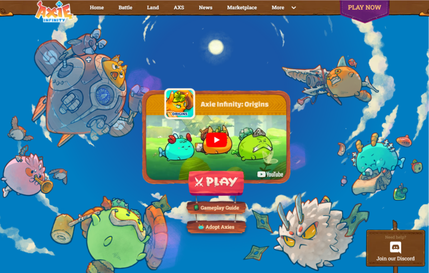 Axie Infinity là trò chơi Play to Earn lấy cảm hứng từ các trò chơi điện tử nổi tiếng của Nhật Bản như Pokemon và thú cưng kỹ thuật số Tamagotchi. Nền tảng game Metaverse này sử dụng NFT để đại diện cho các tài sản cụ thể, lô đất, nhân vật, vật phẩm và các tài sản trong trò chơi khác.