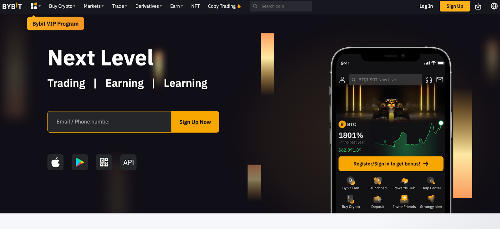 Bybit là một nền tảng phái sinh tiền điện tử cung cấp nhiều công cụ giao dịch đa dạng và phong phú. Bybit cung cấp bảo mật hàng đầu với cam kết không có thời gian chết. Tuy nhiên, nền tảng này hiện chưa hoạt động tại Hoa Kỳ. Bybit được thành lập vào năm 2018 với trụ sở chính đặt tại Singapore.