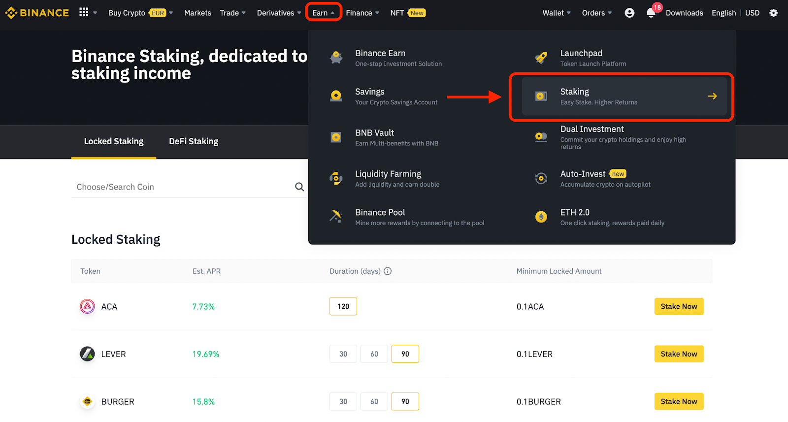 Khi sử dụng Binance, bạn có thể staking tiền điện tử của mình chỉ trong vài bước.