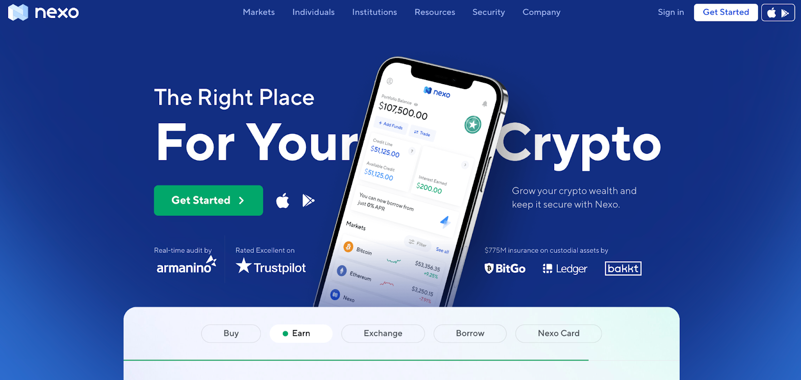 Nexo là một nền tảng tiền điện tử trực tuyến cho phép bạn mua và vay tiền điện tử đồng thời cung cấp dịch vụ để kiếm lãi hoặc swap. Nexo trở nên phổ biến với mức lãi suất cao hấp dẫn các nhà đầu tư. Nền tảng còn cung cấp lãi kép, và được trả hàng ngày.