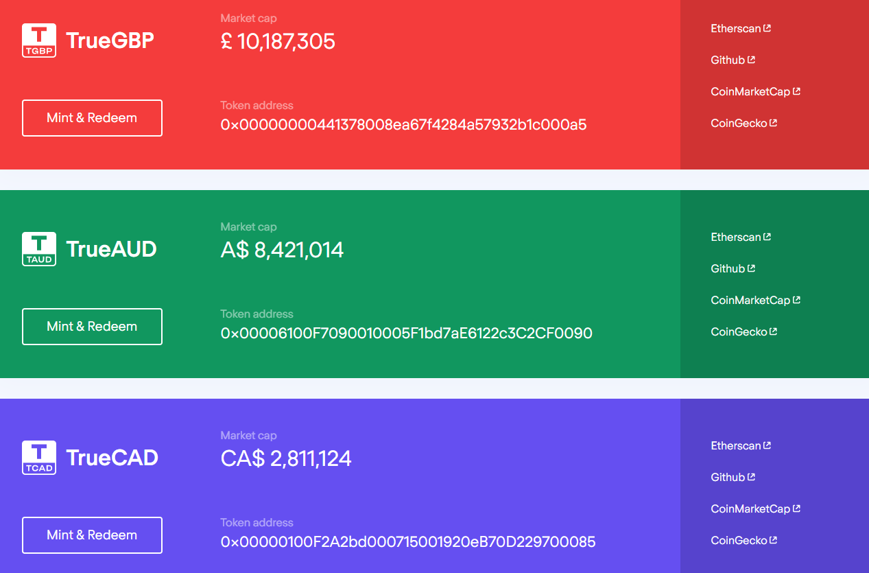 Trên thực tế, TrueUSD không phải là stablecoin duy nhất được phát hành bởi TrustToken. Một số stablecoin khác cũng xuất hiện trong “bộ sưu tập” của TrustToken như TrueGBP, TrueAUD… Tuy nhiên, vốn hóa của TrueUSD hiện vẫn là lớn nhất.