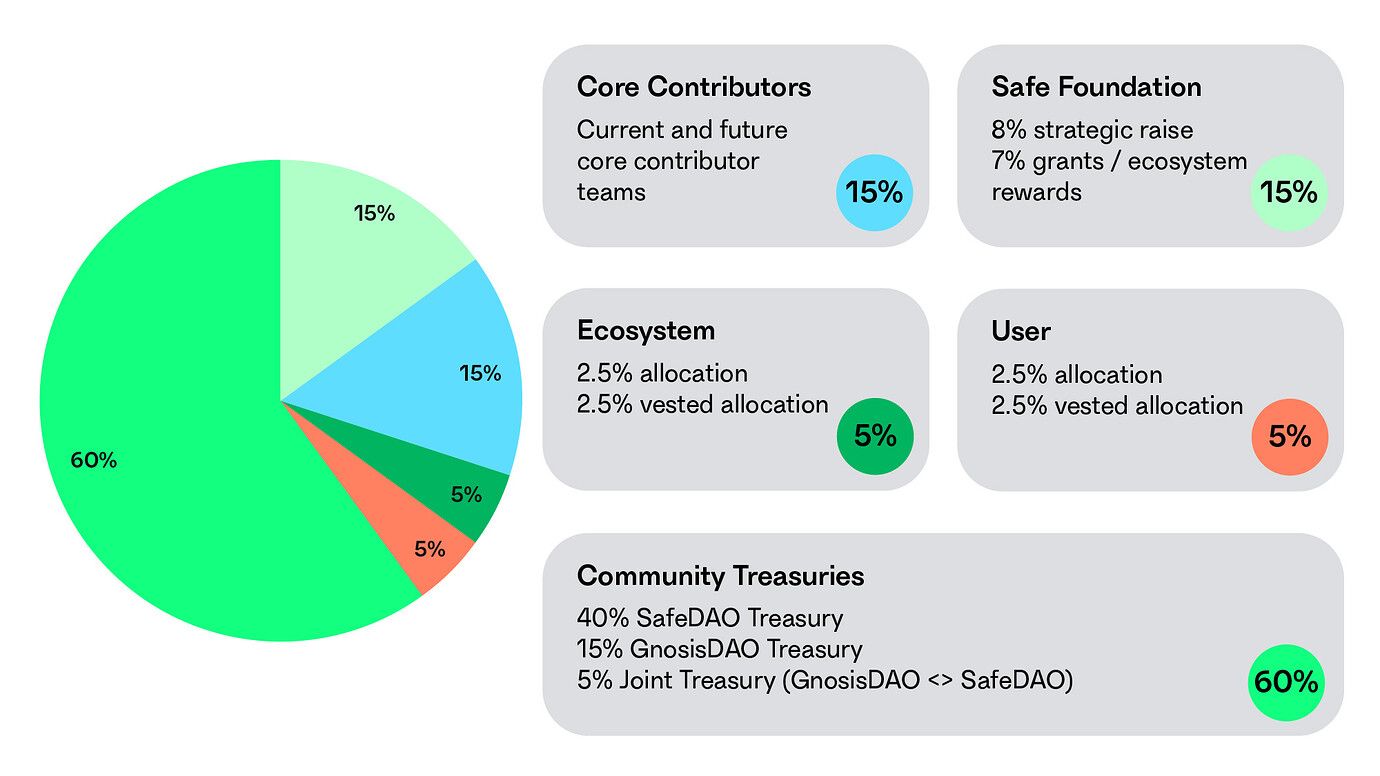 Safe đã tách ra khỏi Gnosis. Quá trình này được bắt đầu với đề xuất GIP-29 của GnosisDAO. GIP-29 đã trình bày kế hoạch tung ra token SAFE với 5% tổng nguồn cung được phân bổ để thưởng cho người dùng vì những đóng góp và sử dụng trong quá khứ của họ. Trong số 5% đó, một nửa sẽ có thể được giao dịch ngay lập tức và một nửa còn lại sẽ được phân bổ tuyến tính trong vòng 4 năm.