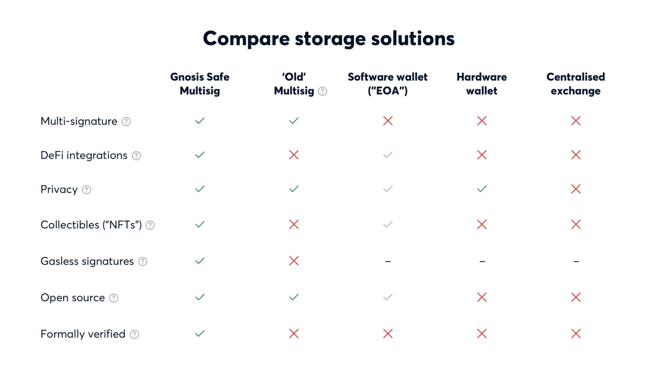 Safe là một ví hợp đồng thông minh chạy trên mạng Ethereum. Thay vì để một cá nhân duy nhất quản lý và có toàn quyền với một địa chỉ ví, Safe sẽ yêu cầu một lượng người tối thiểu để chấp thuận một giao dịch trước khi nó được thực thi. Những địa chỉ ví này được gọi là ví đa chữ ký (multisig wallet).