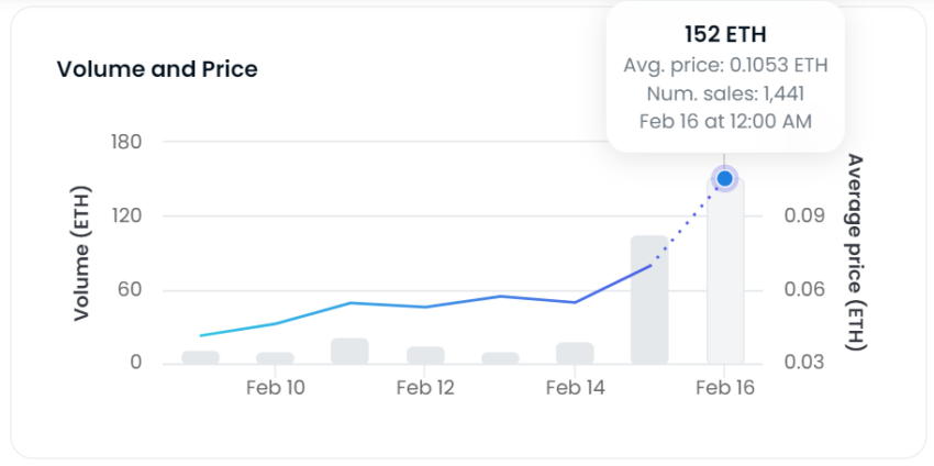 Vào thứ Năm, số lượng giao dịch và doanh số bán hàng của Lens Protocol đã đạt mức cao nhất trong 90 ngày, đạt 152 ETH trong 1,441 lần bán. Giá sàn của Lens Protocol đã tăng vọt lên 0.146 ETH lúc 8:16 UTC, tương đương với khoảng 250 USD. Nguyên nhân của sự tăng vọt này có thể xuất phát từ tin đồn về đợt airdrop LENS sắp tới.