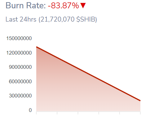 Trong 24 giờ qua, kể từ thời điểm viết bài, tổng cộng 11.7 triệu SHIB đã bị đốt trong 3 giao dịch, theo dữ liệu từ Shib Burn. Vào ngày 21/9, có một sự gia tăng đáng chú ý về tỷ lệ đốt của mã thông báo khi một lượng lớn mã thông báo SHIB được gửi đến một ví chết, đẩy tỷ lệ đốt lên 1,500%. Tuy nhiên, vào thời điểm viết bài, khi dự đoán về chiến dịch giảm dần, tỷ lệ đốt giảm còn 83%.
