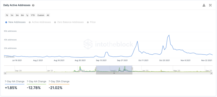 Với việc nguồn cung của SHIB giảm lý tưởng nhất là nó có thể tác động tăng giá đối với mã thông báo nếu cầu tăng lên. Các chỉ số mạng cho thấy sự gia tăng ổn định của các địa chỉ hàng ngày mới với mức tăng 1.85% so với tuần trước. Trung bình khoảng 1,600 địa chỉ được tạo mỗi ngày trong tháng 9.