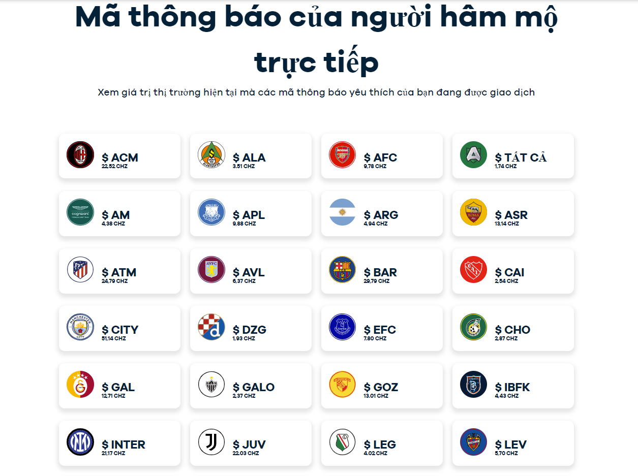 Tại thời điểm viết bài, giá CHZ đang giao dịch quanh mức 0.3 USD, tăng 7.56% trong 24 giờ qua. Mặc dù, CHZ vẫn chịu ảnh hưởng từ những đợt biến động giảm từ thị trường. Song CHZ vẫn được đánh giá là tiền điện tử nổi bật trong lĩnh vực giải trí thể thao. Theo trang web Socios.com, CITY token, từ Manchester city, được định giá là 51.14 CHZ. Đây là Fan token giá trị nhất trong hệ sinh thái. Thứ hạng 2 thuộc về BAR token (tương đương 29.79 CHZ) và hạng 3 là ATM token (tương đương 24.79 CHZ).