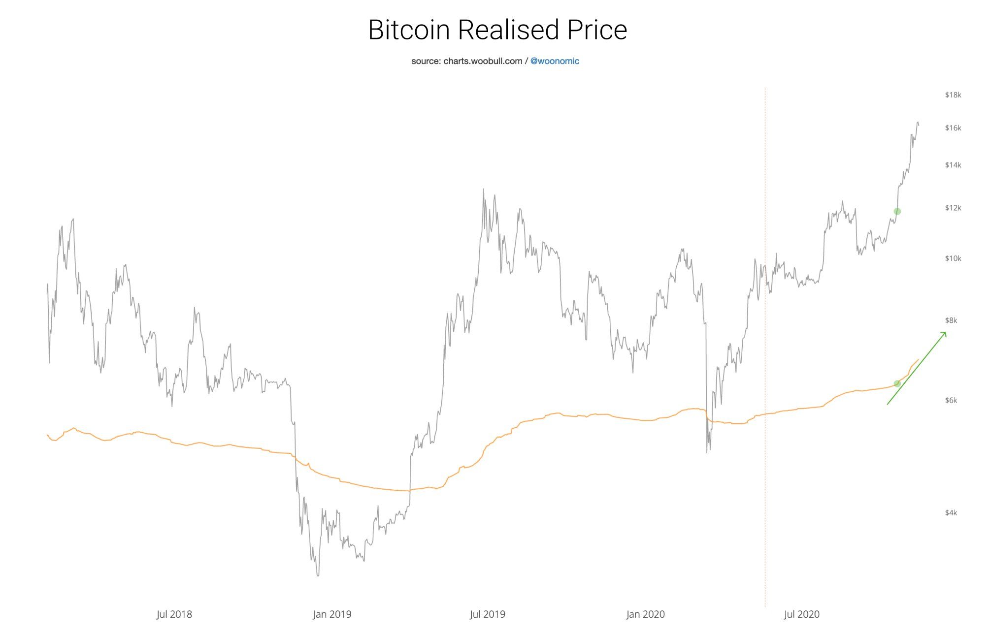 “Giá thực hiện ước tính mức giá trung bình mà thị trường trả cho BTC của mình. Hiện giờ, nó đang ở mức dốc nhất trong chu kỳ này. Có nghĩa là dòng vốn chảy vào Bitcoin đang ở tỷ lệ cao nhất kể từ thị trường giá tăng vừa qua. (Cao hơn chuyển động từ 4.000 USD lên 14.000 USD của năm ngoái; chuyển động hiện tại sống động hơn nhiều).”