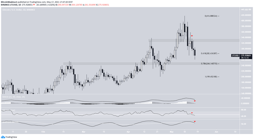 Hơn nữa, LTC đã không thể bật lên ở mức hỗ trợ thoái lui 0,618 Fib ở mức $282.