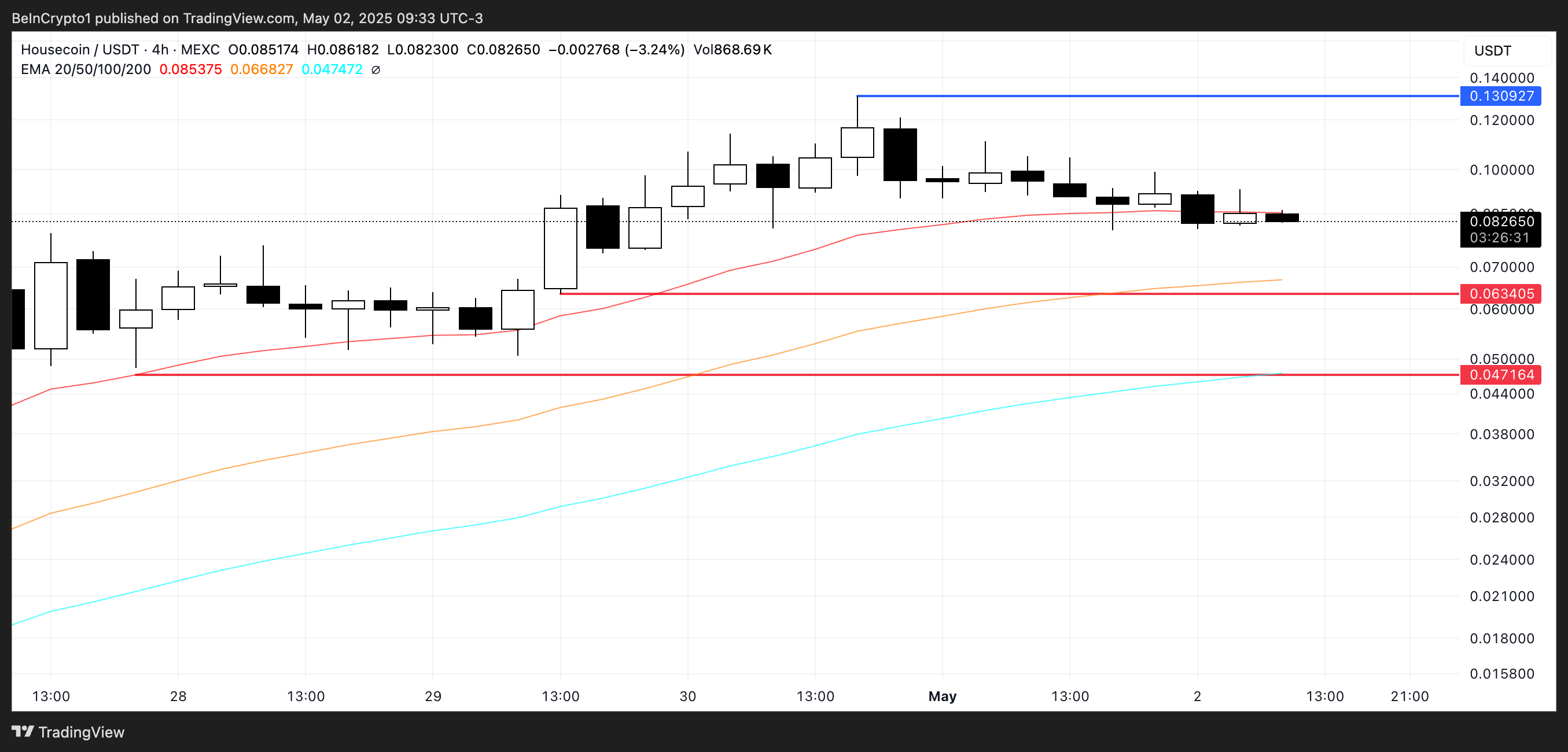 Nếu người mua quay trở lại, HOUSE có thể kiểm tra lại mức 0.13 USD và có thể đạt 0.15 USD, thiết lập mức cao nhất mọi thời đại mới và khơi dậy sự hứng thú.