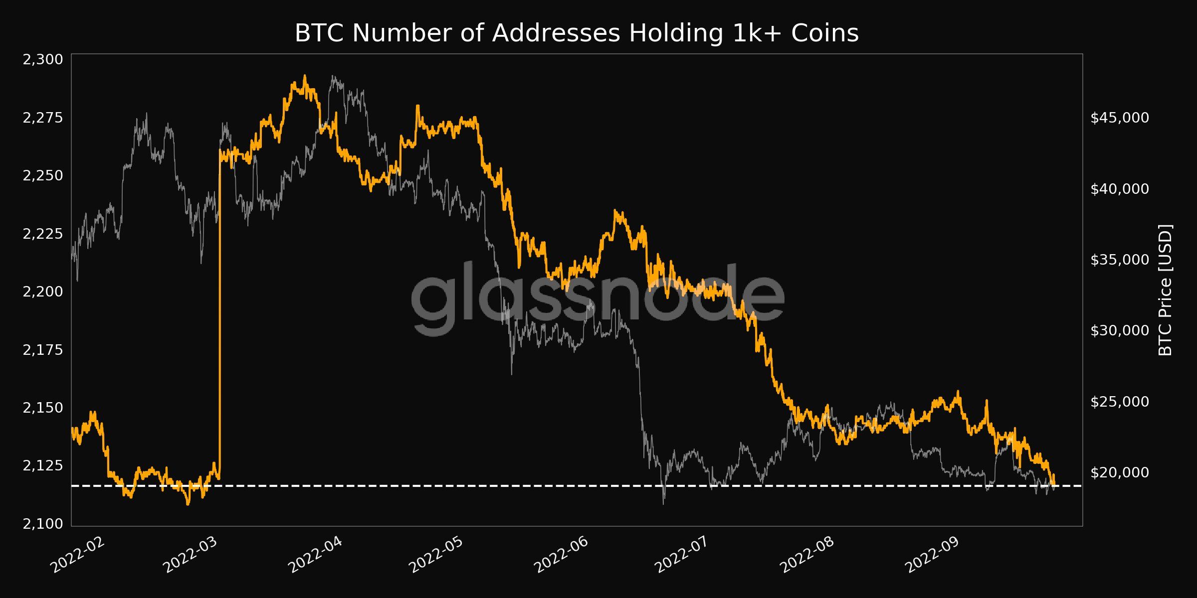 Số dư 1,000 BTC là rất lớn với một cá nhân. Nó đại diện cho dòng vốn chính yếu của thị trường. Và hôm nay lượng địa chỉ BTC có số dư từ 1,000 đã lập mức thấp nhất (LTH) của 6 tháng qua. Nó cho thấy, cá voi đang rời bỏ thị trường.