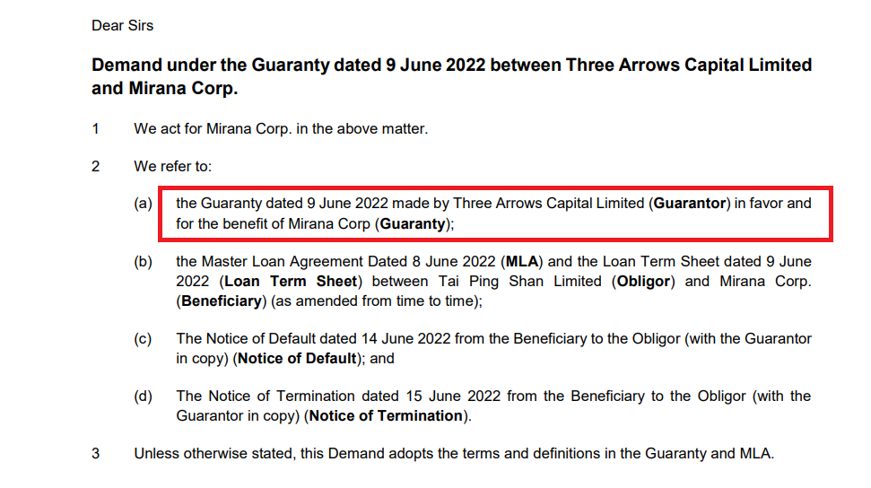 Thứ hai, trong tài liệu (trang 570) có nói về thỏa thuận giữa 3AC và Tai Ping Shan. Trong đó, 3AC với vai trò là người đảm bảo (Guarantor) cho các nghĩa vụ của Tai Ping Shan Limited đối với Mirana Corp dựa theo thỏa thuận cho vay. Điều đó có nghĩa là 3AC lại bảo lãnh khoản vay cho TPS Limited.
