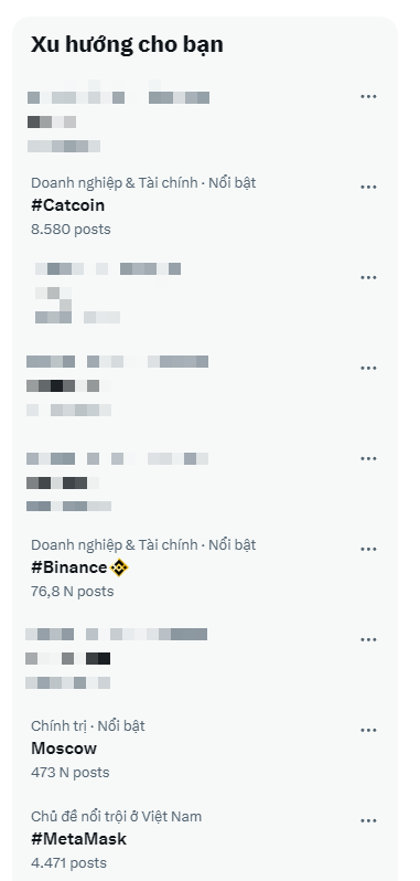 Mạng xã hội X (trước là Twitter) là mạng xã hội mà bất kỳ nhà đầu tư crypto nào cũng sử dụng. Mục “Xu hướng dành cho bạn” là những đề xuất các hashtag hoặc chủ đề mà cộng đồng Việt Nam nói riêng và Quốc tế nói chung đang bắt đầu đề cập đến nhiều.