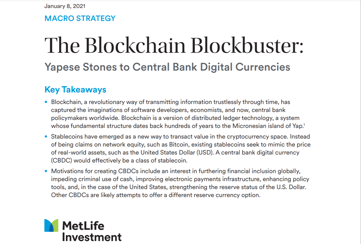 Mới đây, trên trang chủ MetLife Investment Management vừa đăng tải một bài nghiên cứu Blockchain. Qua bài luận dài 18 trang cho chúng ta thấy gã khổng lồ này đã dành nhiều công sức tìm hiểu.