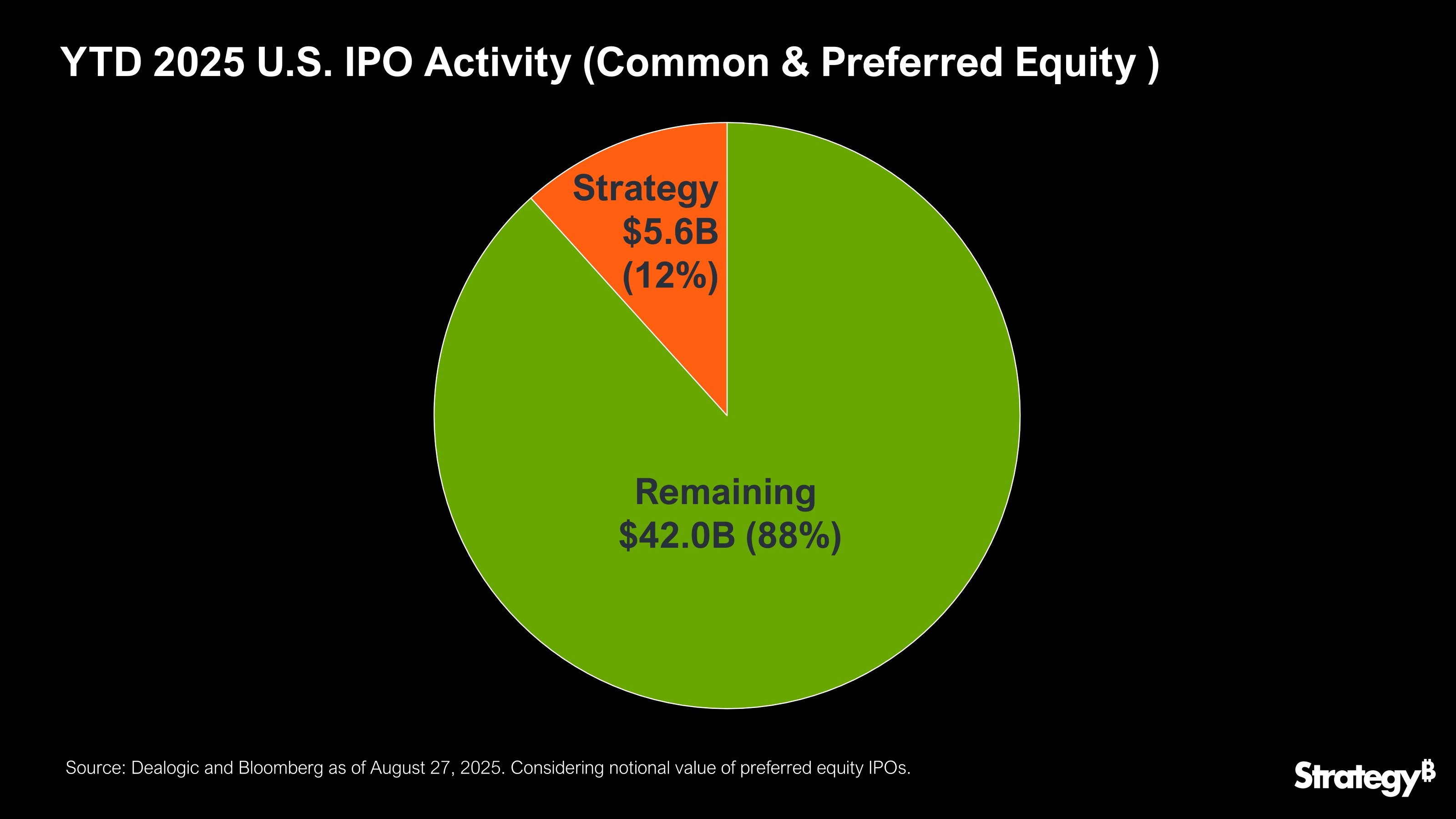 Strategy đã dựa rất nhiều vào thị trường chứng khoán để tài trợ cho việc mua của mình. Cho đến nay trong năm 2025, công ty đã huy động được 5.6 tỷ USD từ các đợt IPO, chiếm khoảng 12% tổng số đợt niêm yết tại Mỹ.